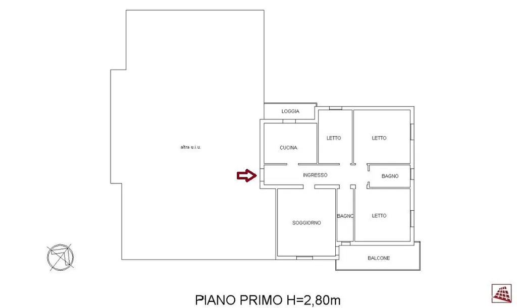 Appartamento di generose dimensioni, 110 mq circa, posto al primo piano e caratterizzato da una particolare luminosità e buona distribuzione degli spazi.