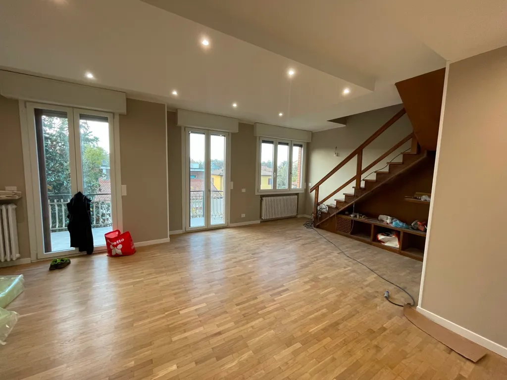 Rif. ASIVIT 871 - Appartamento di grandi dimensioni completamente ristrutturato a nuovo con finiture di alto livello composto da: ingresso, soggiorno di oltre 30 mq con affaccio su ampio balcone ad angolo, cucina abitabile con balcone, due camere matrimoniali, due bagni, disimpegno con armadio a muro. Dal soggiorno si puàq accedere tramite scala in legno alla mansarda con bagno privato, dove si puàq ricavare un'ampia camera da letto. Completano la proprietà una cantina e un garage doppio. Ottimo contesto in via residenziale chiusa al traffico.
