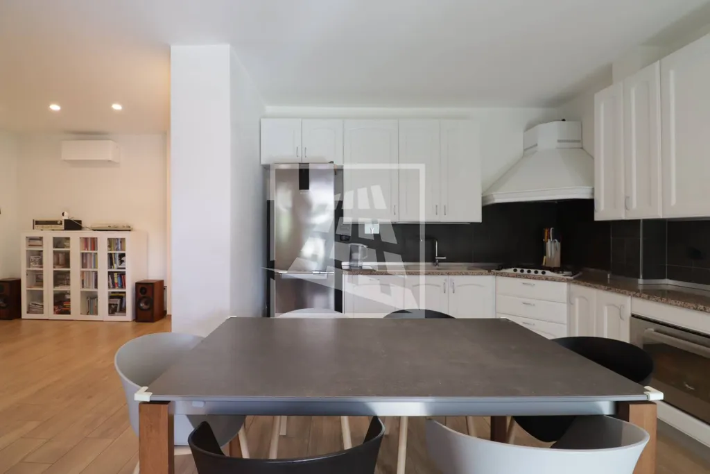 La cucina, attualmente a vista, è stata concepita con la flessibilità necessaria per essere eventualmente trasformata in cucina abitabile.