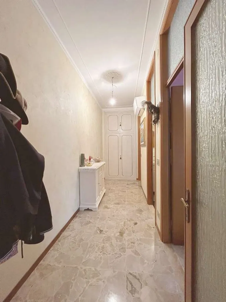 Rif. 5274 - Rif. 5274 MERIDIANA In strada chiusa, appartamento di ampia metratura in palazzina faccia a vista, così composto: ingresso con armadio a muro, cucina abitabile rifatta, sala con balcone, disimpegno/corridoio con armadio a muro, 2 camere matrimoniali, antibagno e bagno rifatti nel 2016, finestrato, con doccia. Impianto elettrico rifatto, aria condizionata/pompa di calore, zanzariere, boiler a gas nuovo, avvolgibile elettrico in sala. Completo di cantina e garage. Possibilità parcheggio all'interno del cortile. Euro 178.000
