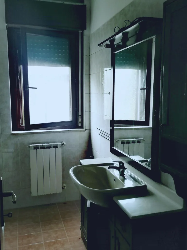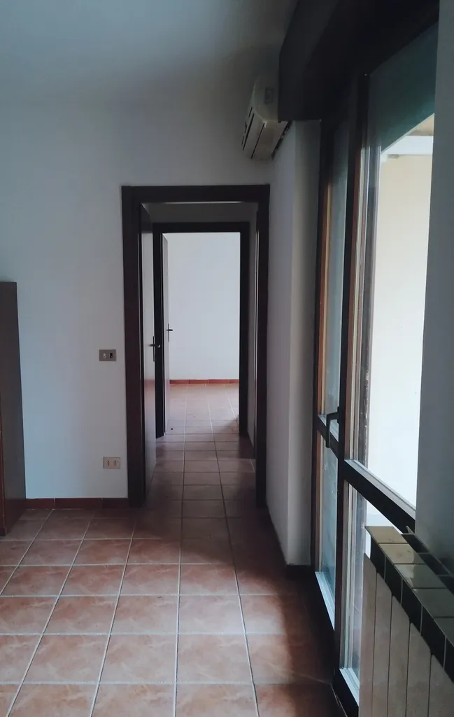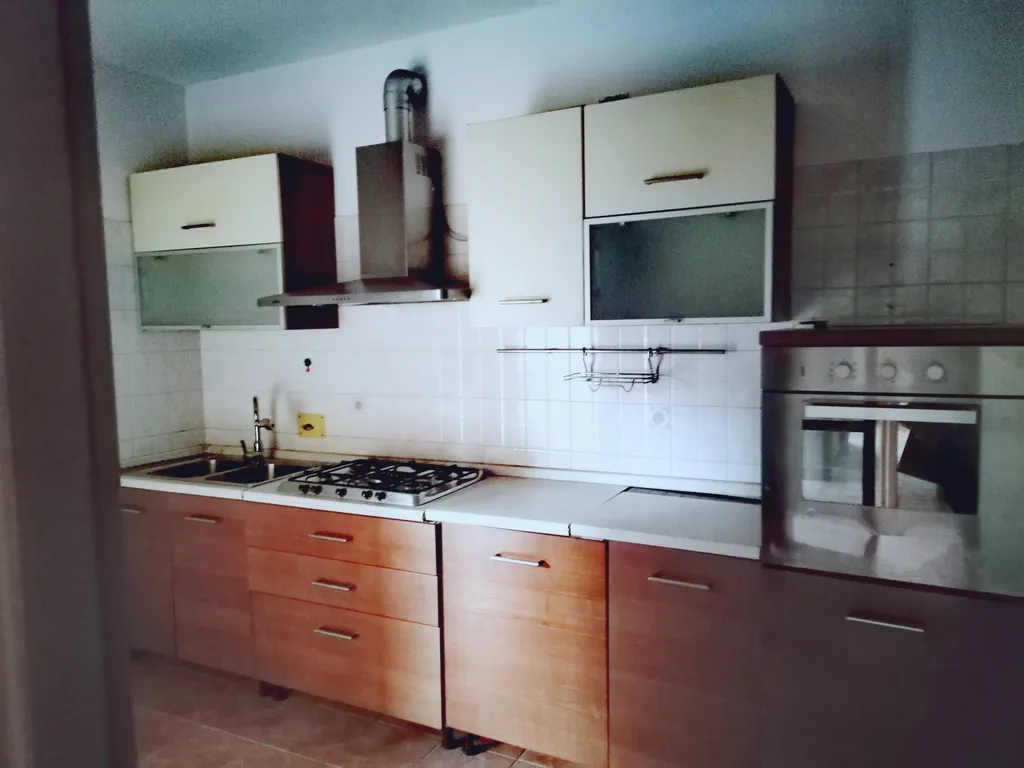In palazzina con ascensore, appartamento VUOTO ( tranne cucina ), composto da soggiorno con loggia coperta ed abitabile, cucina separata, disimpegno, 2 camere da letto, bagno (con finestra ). Garage posto al piano terra. Utenze autonome. Buona la posizione. € 550