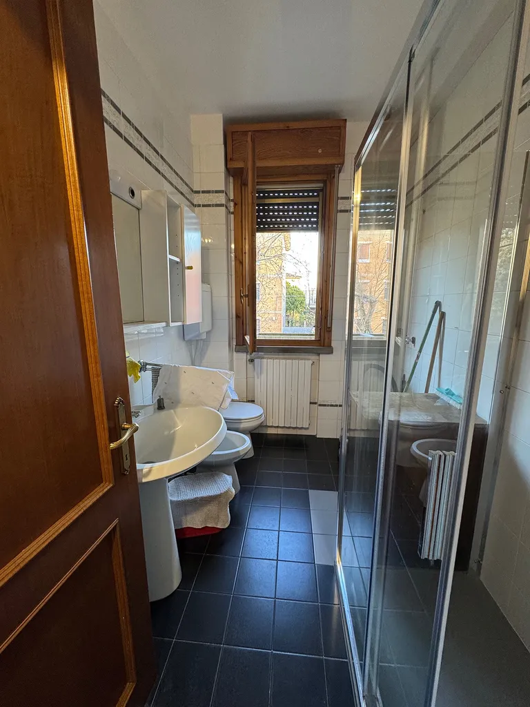 Rif. REM746 - Rif. 9472 SAN PELLEGRINO: Nelle vicinanze del ponte di San Pellegrino, proponiamo appartamento con utenze autonome e ascensore, posto al primo piano di una piccola palazzina, composto da soggiorno, cucina, loggia, disimpegno notte, 2 camere da letto con ampia loggia, bagno con doccia e finestra. Completano l'offerta una cantina grande ed un garage di 60 mq. per 3 auto con bascula automatica. Immobile climatizzato. Disponibilità immediata. Rich. euro 168.000,00 APE in rilascio