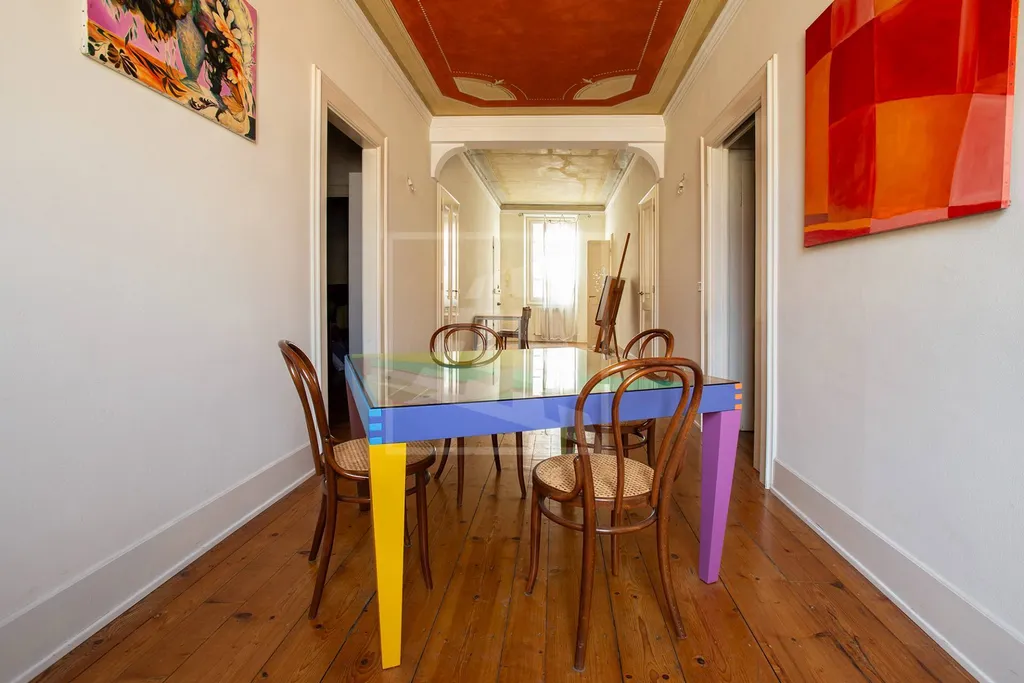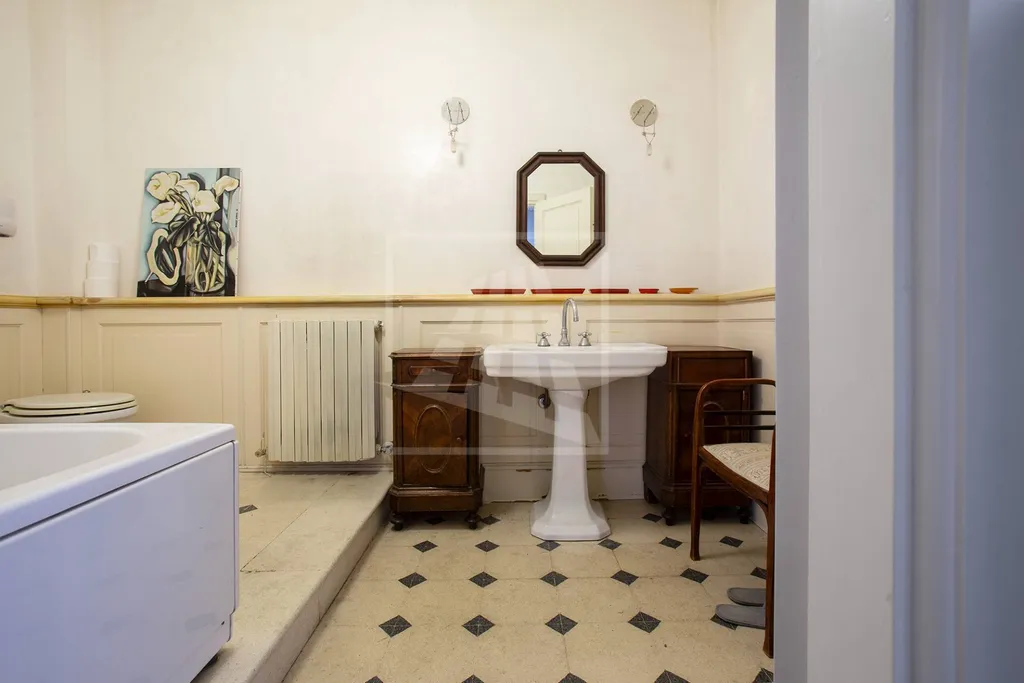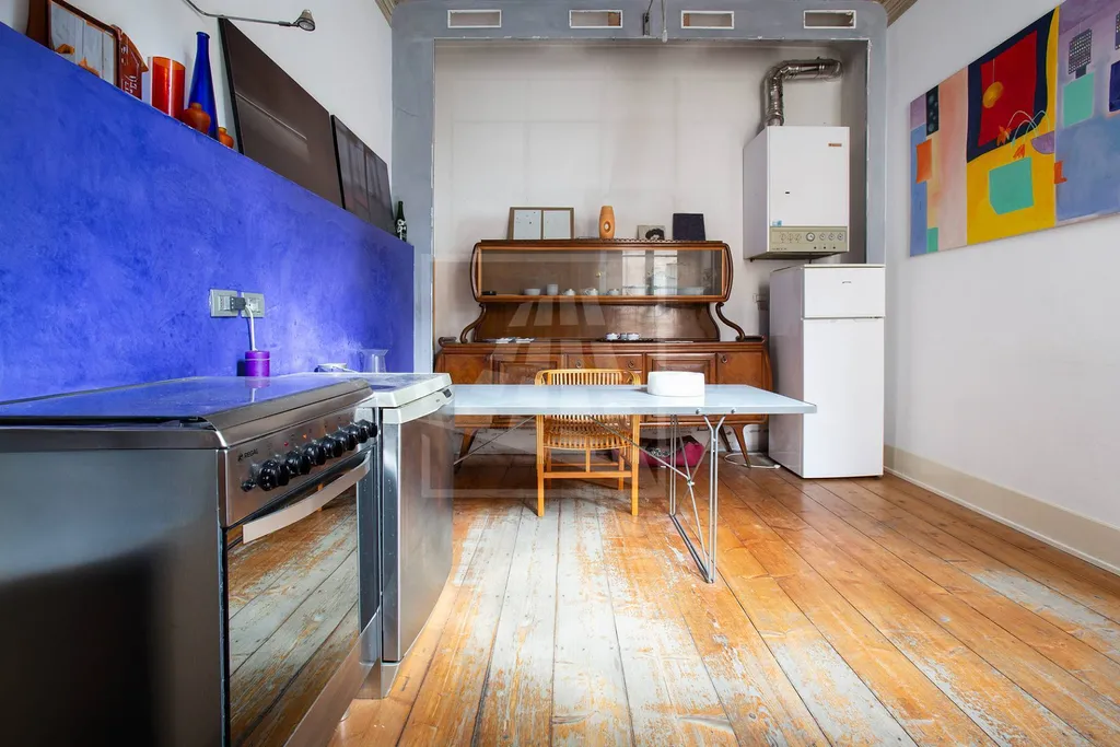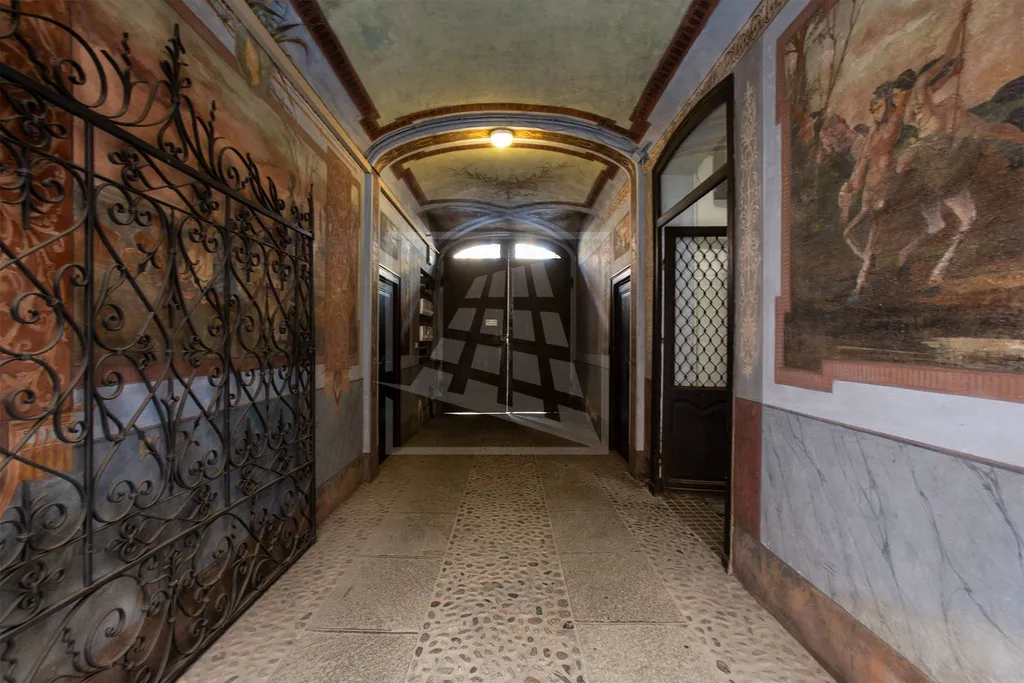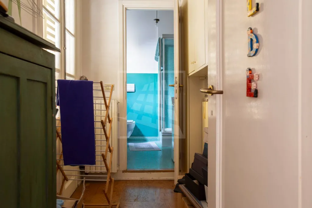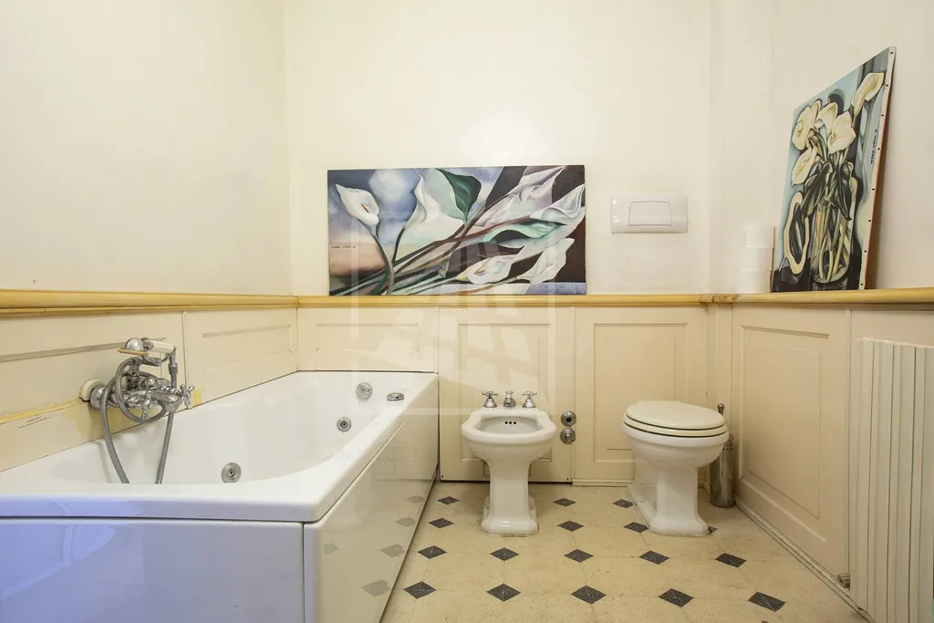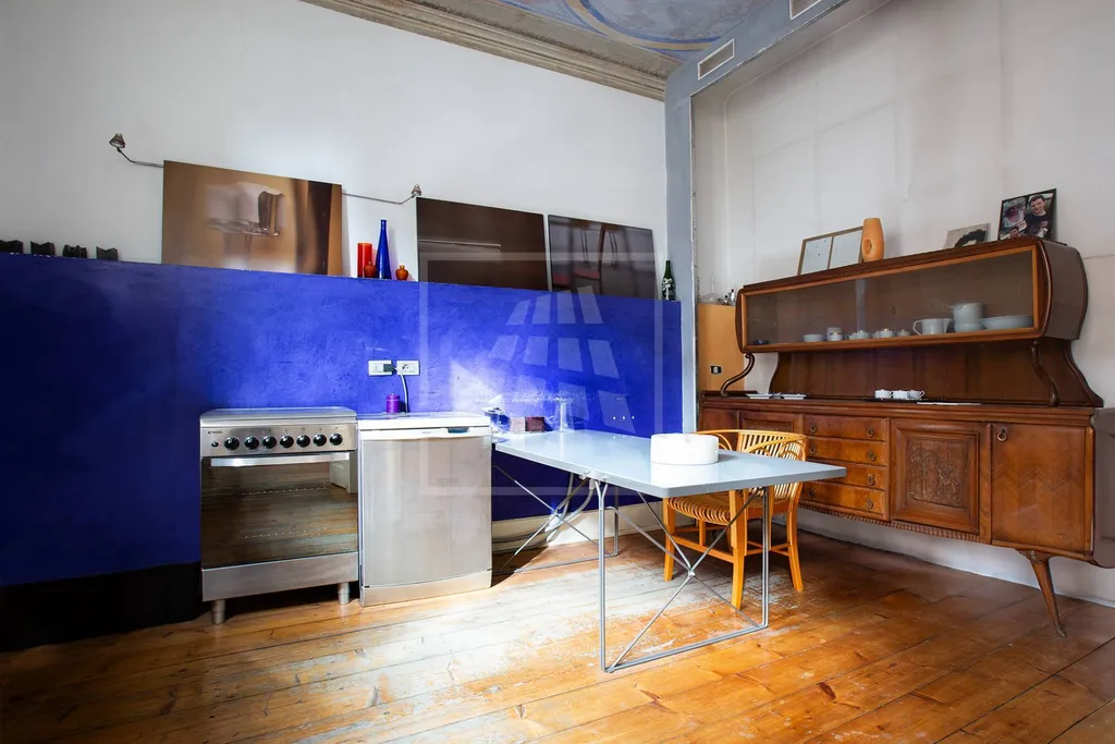 Il sapore unico dellappartamento si accompagna al confort e alle finiture di lusso e ampi spazi versatili: oltre ai soffitti affrescati (cucina compresa), un assito di abete e il cotto originale del 700 dialogano con una scala di cristallo che porta alla zona notte e con il bagno principale rifinito con boiserie e stucco veneziano.