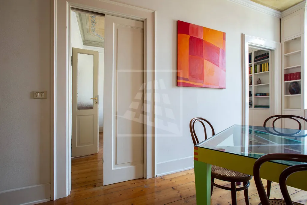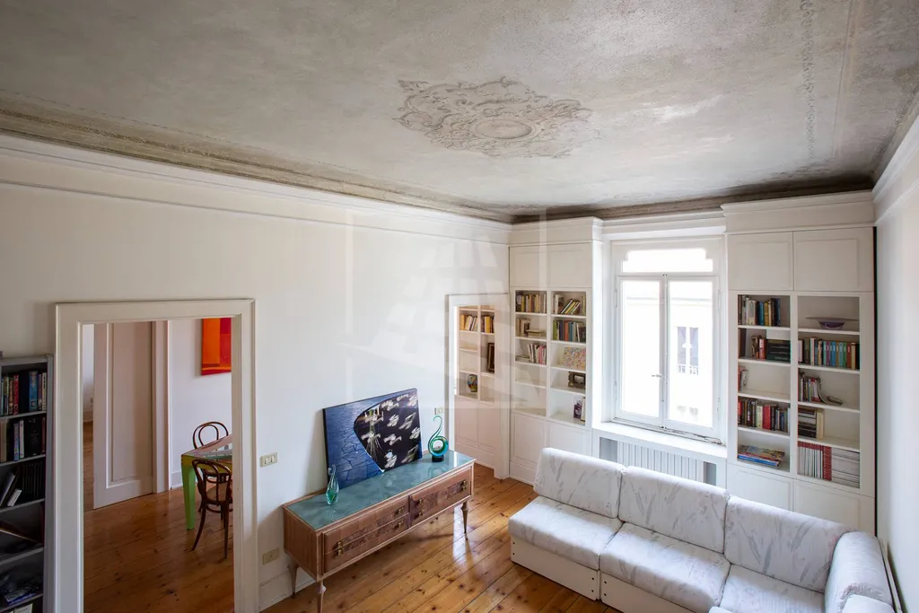 Appartamento di oltre 170 metri quadrati con affaccio sulla via Emilia, molto luminoso, con alti soffitti affrescati, completamente ristrutturato ed inserito in palazzina storica con androne affrescato e due cortili interni.