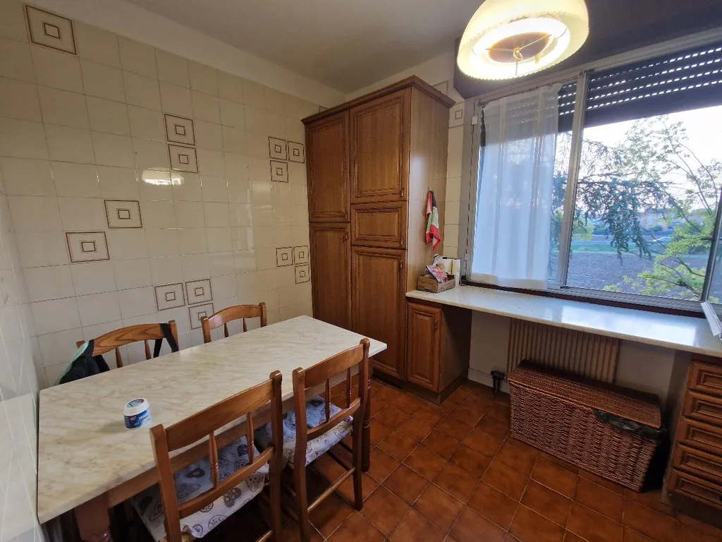 Rif. R1501 - Quadrilocale molto arioso e luminoso 2° piano con ascensore in zona ben servita così composto: ampio soggiorno con loggia coperta, cucina abitabile separata con affaccio sul verde, tre camere da letto, bagno, cantina e garage. Libero subito se necessario.