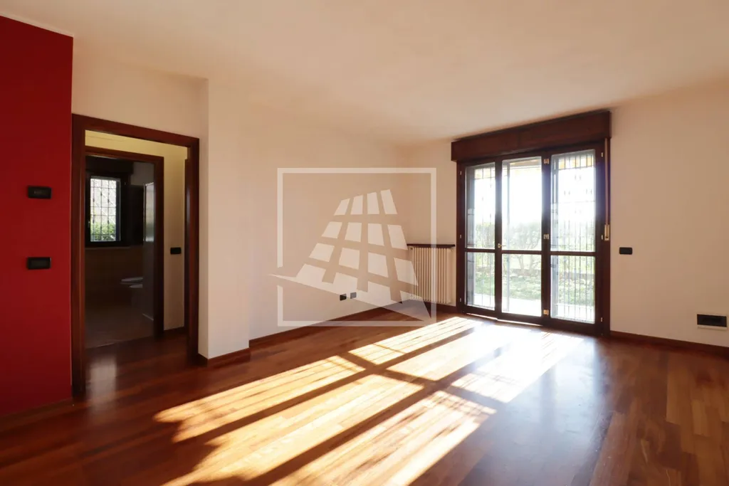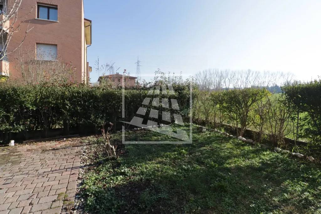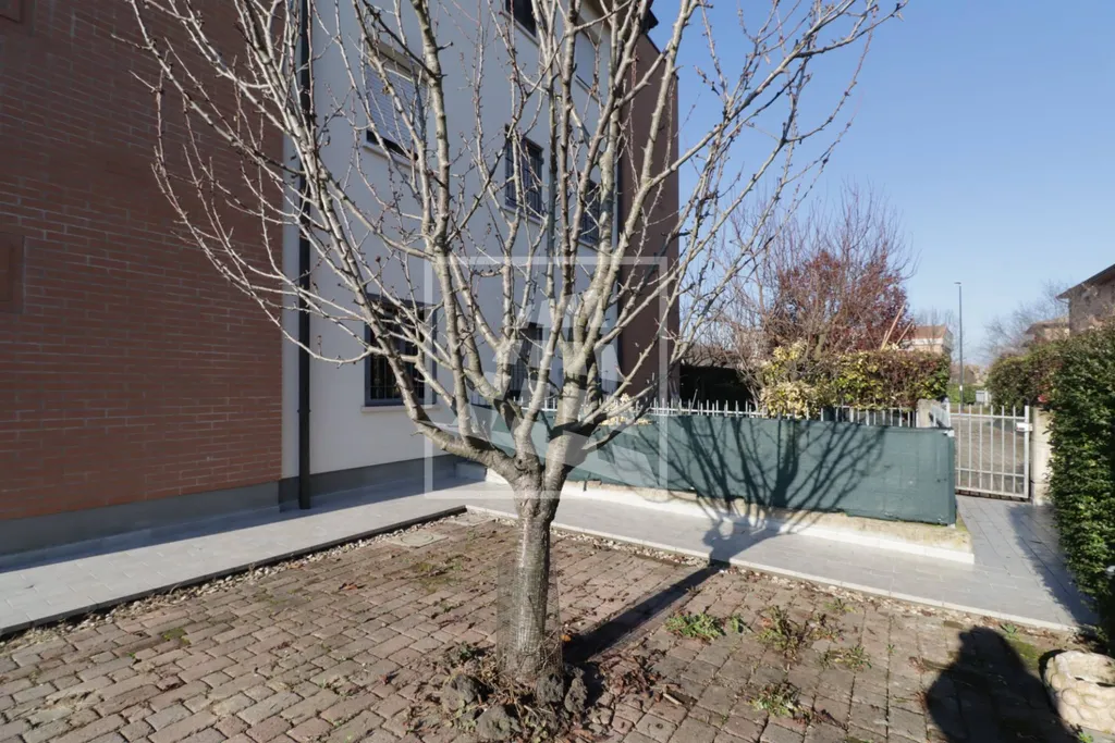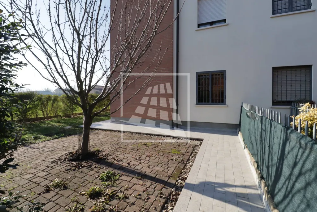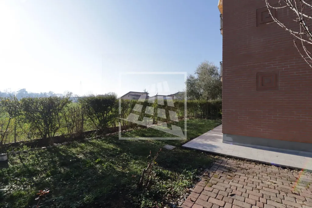 Appartamento di 55 mq, dotato di doppio ingresso indipendente, un porticato con ottima esposizione a Sud che sfoga su un ampio giardino privato di circa 130 mq.