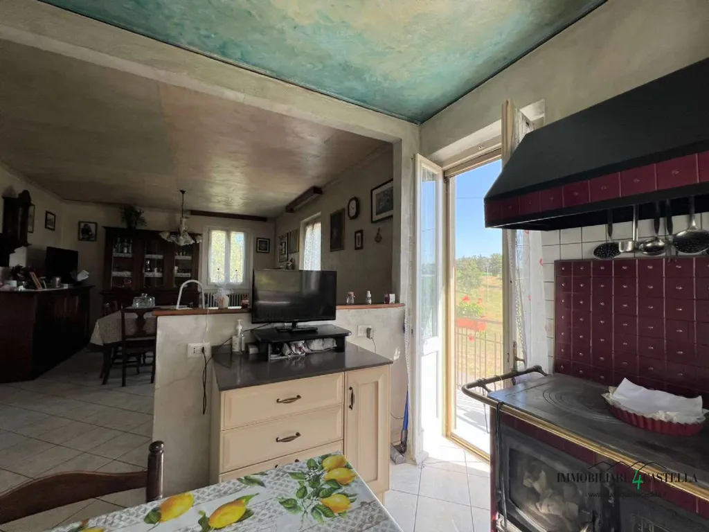 Al secondo piano appartamento con ingresso su ampio soggiorno con camino e balcone, cucina abitabile, reparto notte con 2 camere matrimoniali e bagno con vasca.