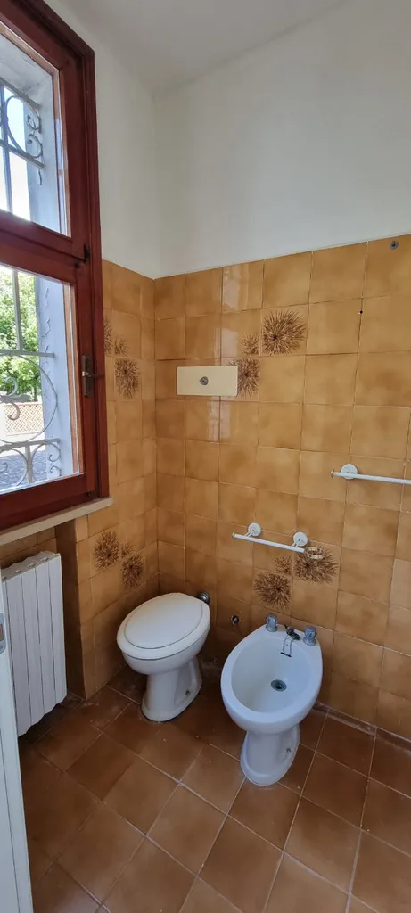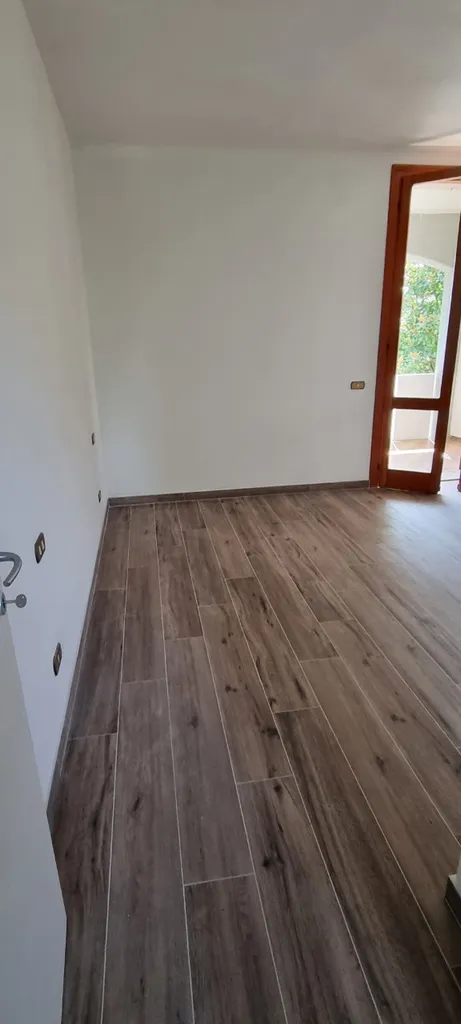 Anche qui ritroviamo porte laccate bianche, infissi in legno con vetrocamera doppia e pavimenti in monocottura.