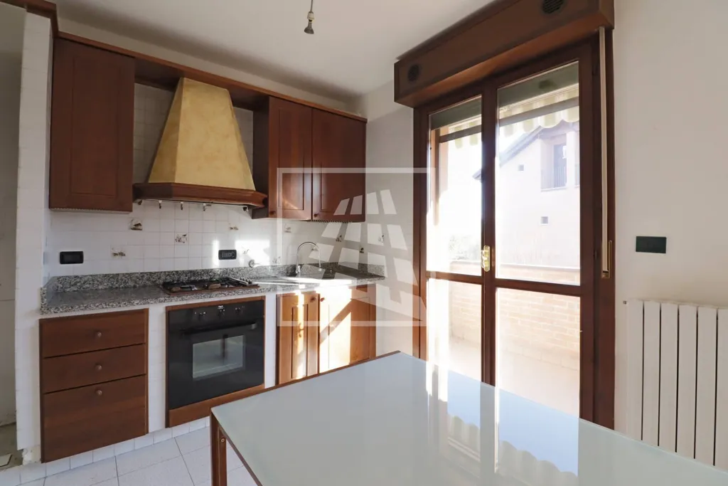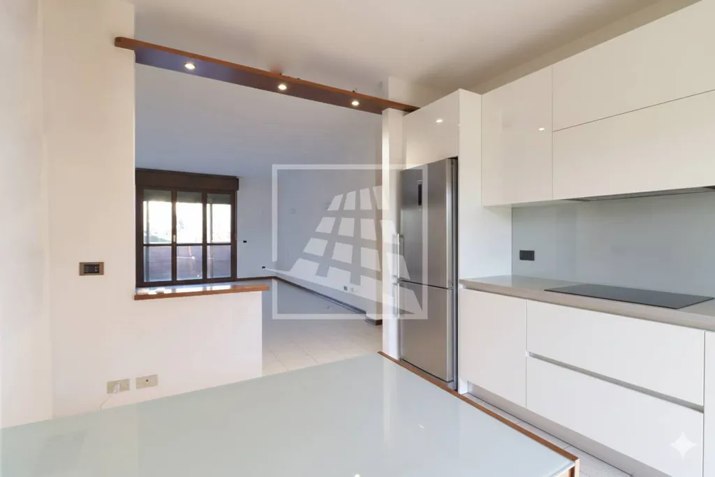 La zona giorno si compone di un ingresso sul soggiorno, completo di una spaziosa loggia, e di una cucina abitabile con balcone.