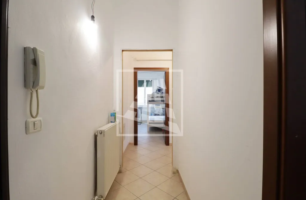 L'abitazione è composta da un ingresso sulla zona giorno con soggiorno e angolo cottura, servita da un balcone esposto a Nord.