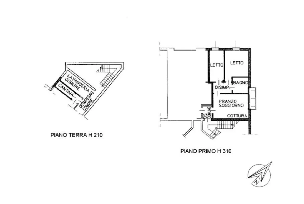 Appartamento di circa 60 mq, posto al primo piano in palazzina di tre servita da scale condominiali.
