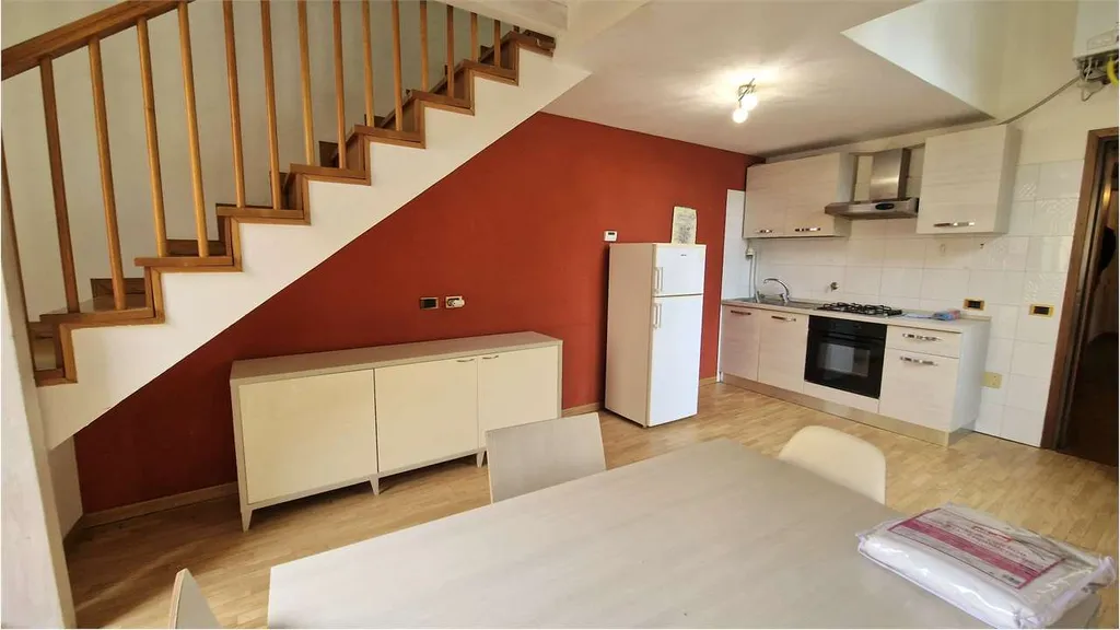 L'alloggio è composto da un luminoso soggiorno con cucina open-space con sovrastante soppalco con bagno;