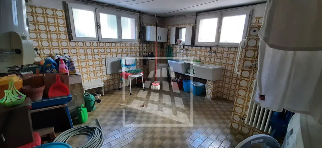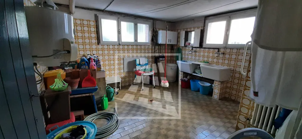 Al piano terra si trovano l'ingresso principale, una zona comune con area lavanderia, un ulteriore vano pluriuso, una cantina e due garage.