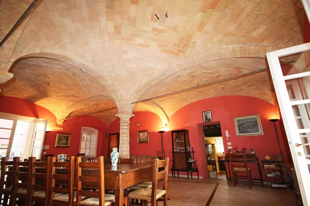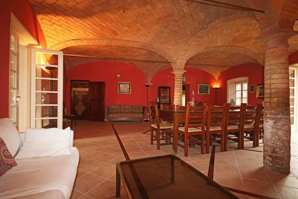 Nella ex stalla si sottolineano gli autentici colonnati ed il soffitti a volta in vecchi mattoni di cotto a vista, memoria della passata civiltà contadina.