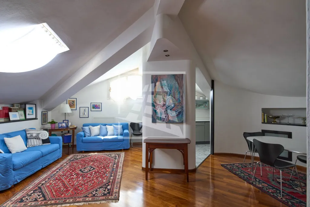 Il cuore dell'abitazione si sviluppa al primo piano, dove un ampio ingresso arredabile conduce alla zona living, caratterizzata da un doppio soggiorno con balcone particolarmente vivibile e un cucinotto separato.