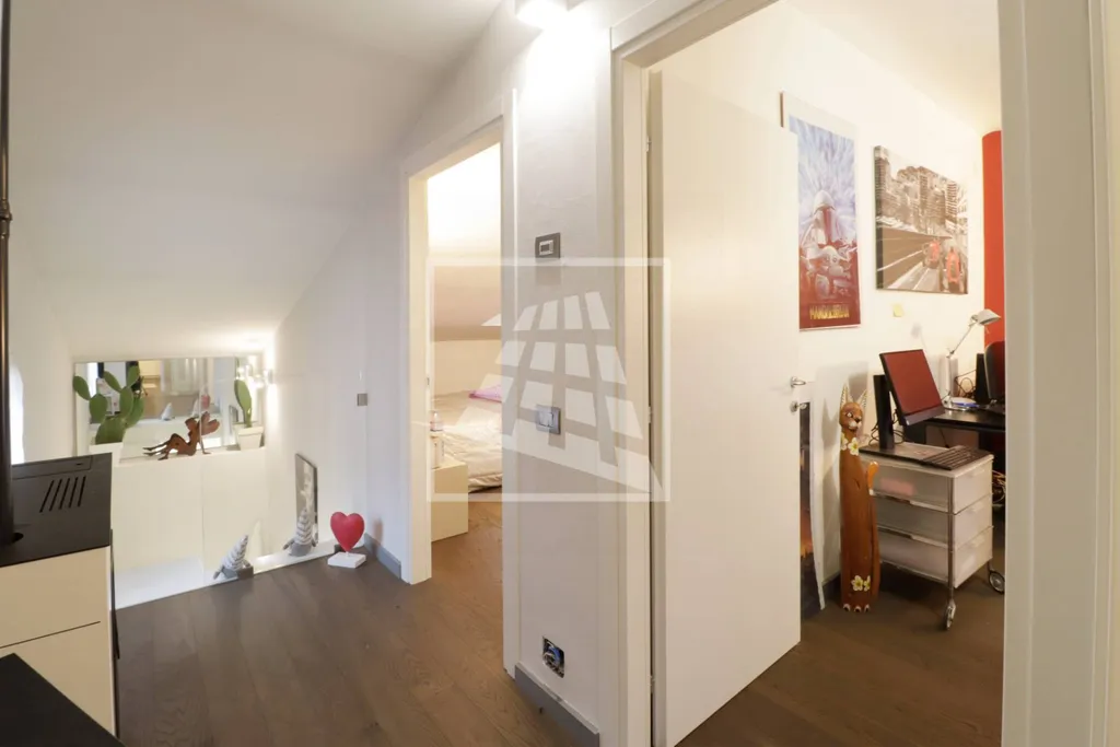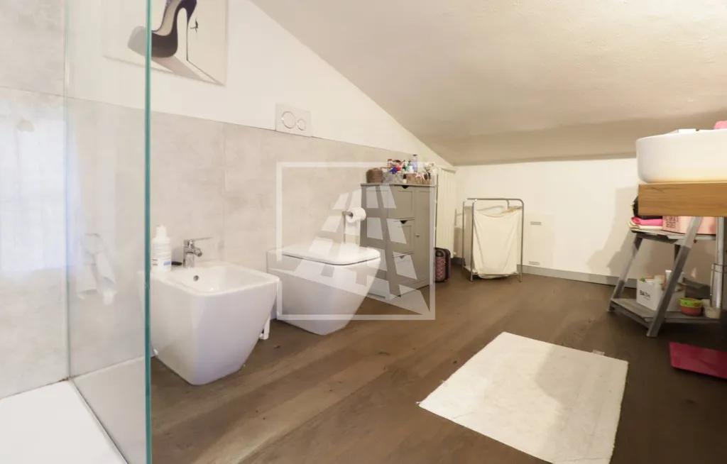 Proseguendo verso l'ultimo livello, nel piano sottotetto, si trovano due spaziosi vani mansardati, attualmente utilizzati come studio e camera, serviti da un secondo bagno finestrato con box doccia.